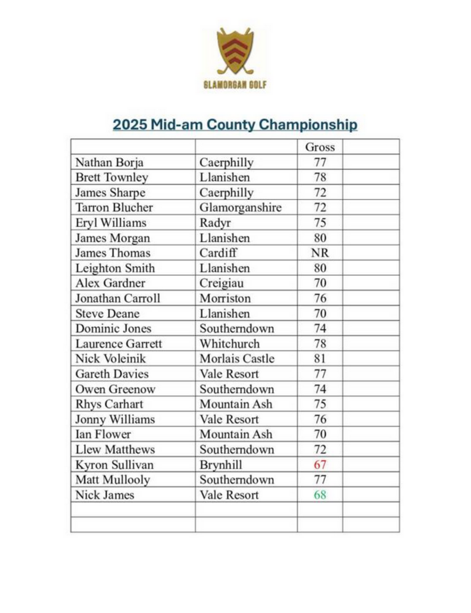 Winner: Kyron Sullivan (Brynhill) 67 Gross