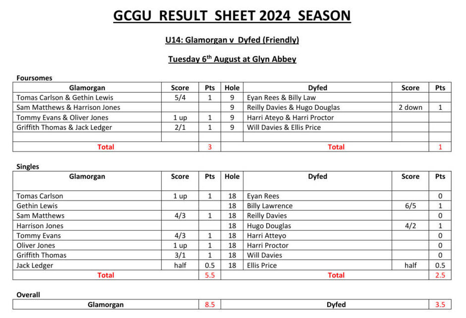 U14 v Dyfed at Glyn Abbey GC