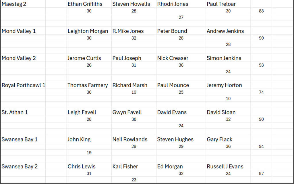 Maesteg 1 and Grove 1 qualify for the Final of the Welsh Handicap Team Championship at Creigiau on Sunday 31st August.